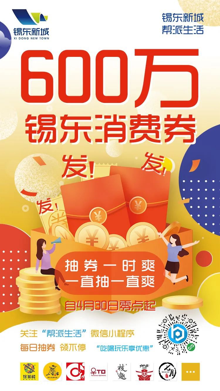 锡东新城首期600万元电子消费券即将出场!线上投放,政府引导、商家联动,发放、领取、消费、兑现全程可追溯。本次发放的消费券锡东优选商家通用,肆意享用!更有部分消费券,每份面值高达50元或100元,面向全体市民公开发放。