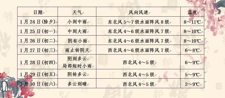 春节期间,苏州降水量增多,从除夕到初四都有雨。