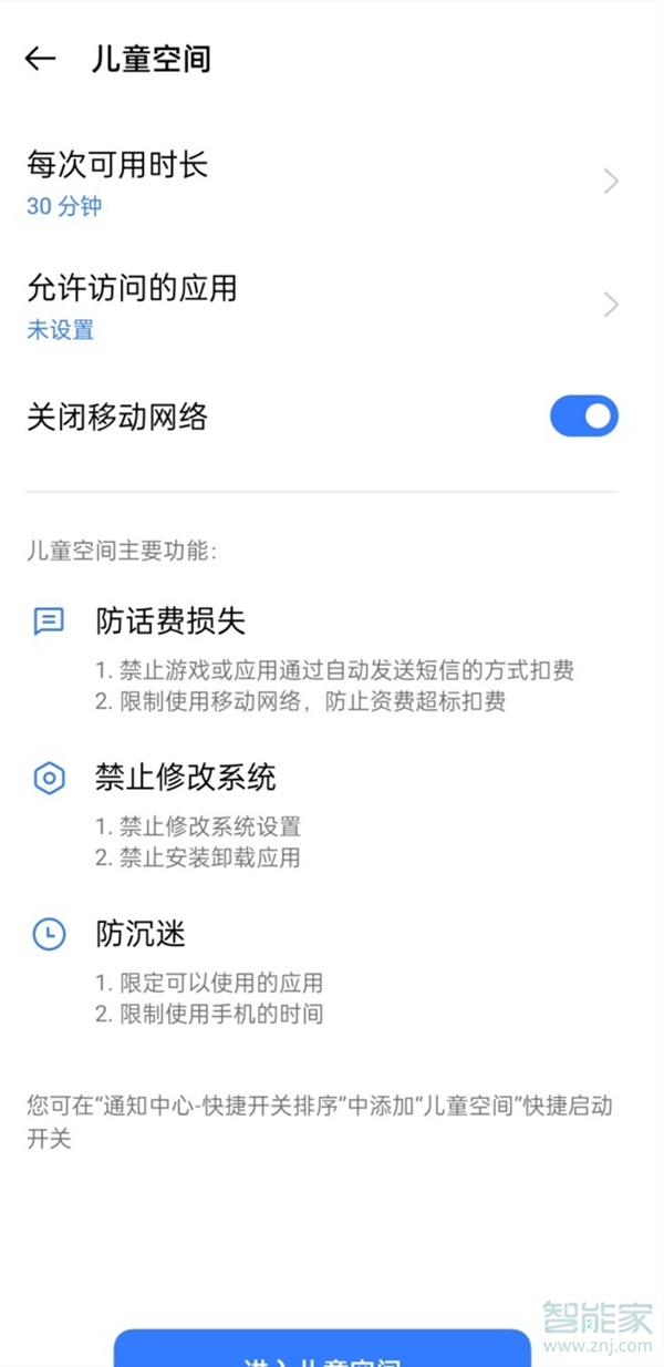 3、设置时长、访问应用等等设置,点击进入儿童空间即可。