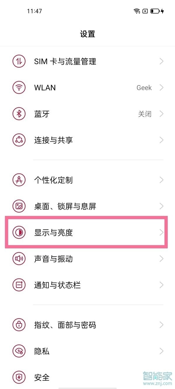 1、在手机设置菜单中点击【显示和亮度】。