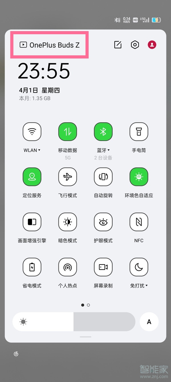 1、从屏幕顶部下滑出通知栏,点击已经连接的蓝牙耳机。