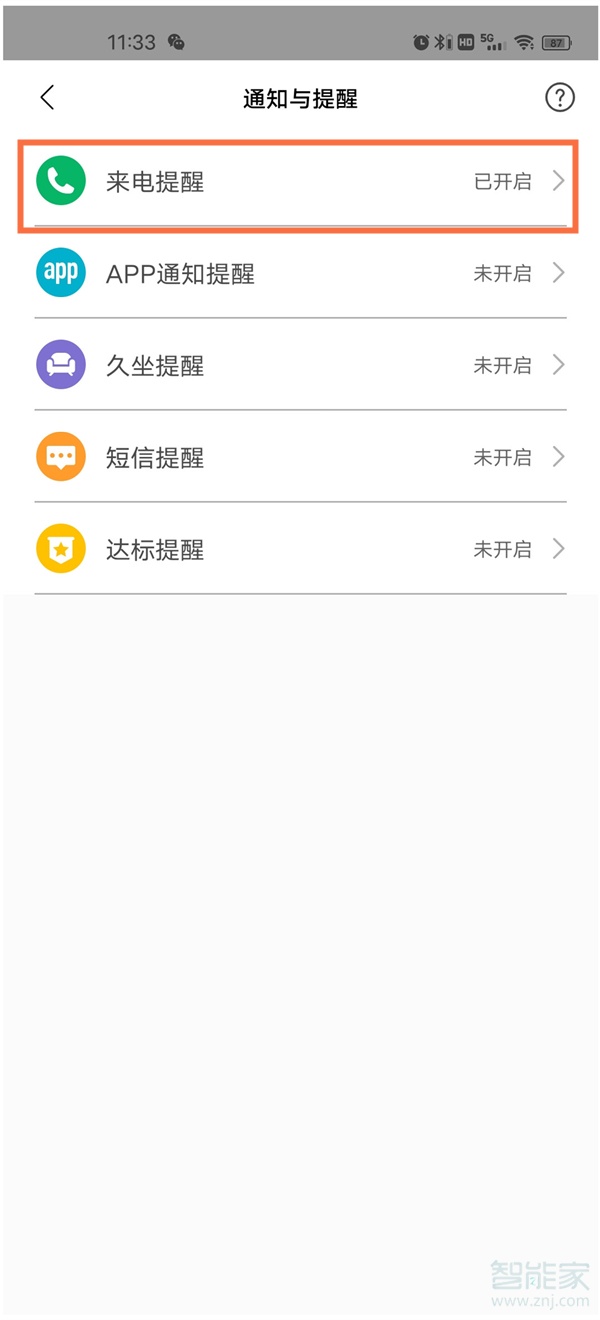 2、点击来电提醒。