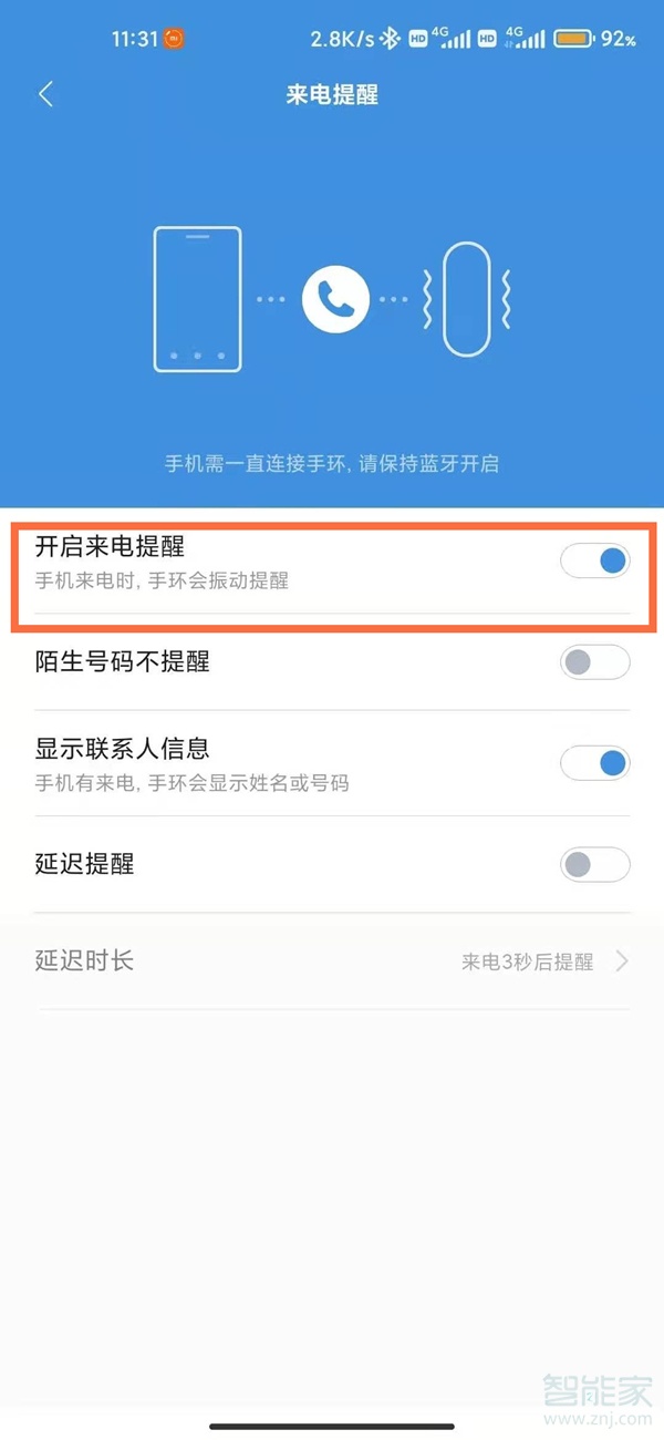 3、将开启来电提醒的右侧开关开启即可。
