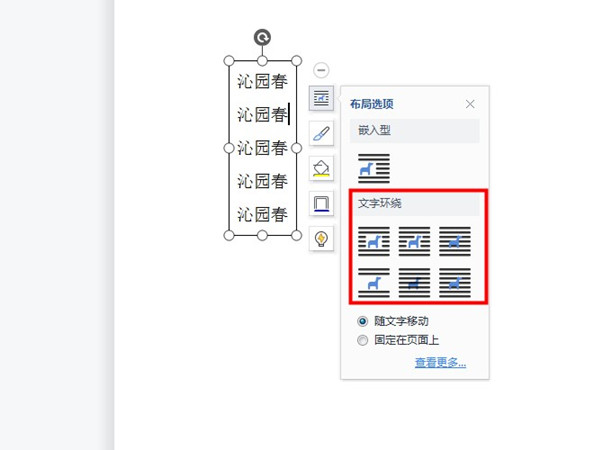 2、点击旁边的布局选项图标,选择文字环绕样式即可。