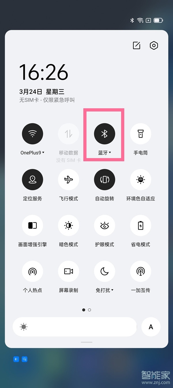1、从屏幕顶部下拉,拉出状态栏,点击蓝牙即可。