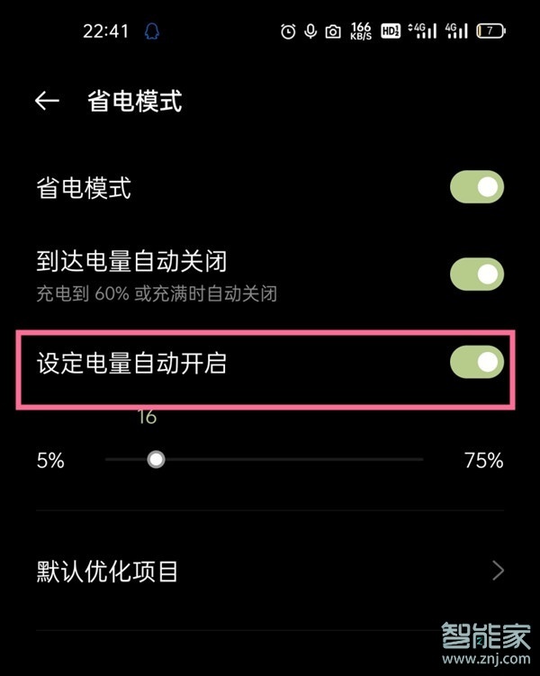 3、关闭【省电电量自动开启】右侧的开关。