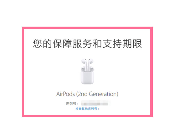 2、去苹果官网技术支持页面,找到“查看保障状态”页面,把序列号粘贴进来就可以查看airpods型号。
