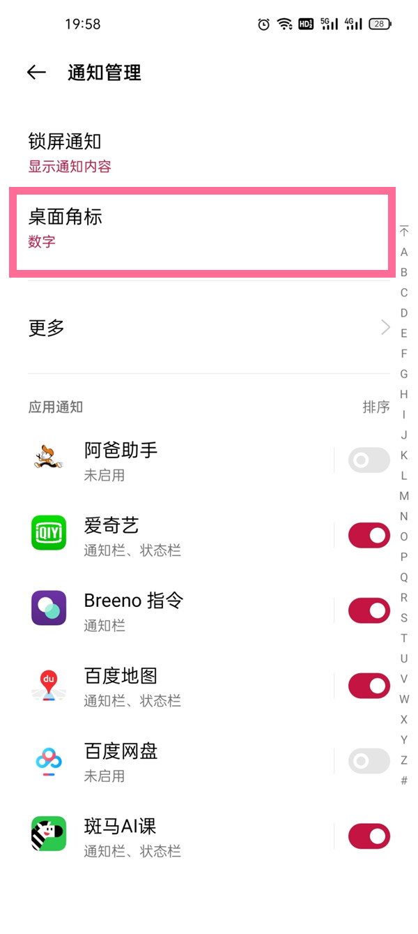 3、点击【桌面角标】选项。
