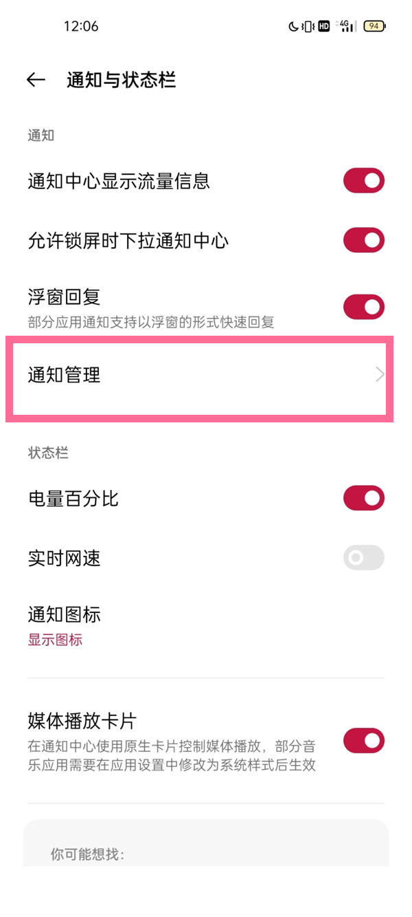 2、点击【通知管理】选项。
