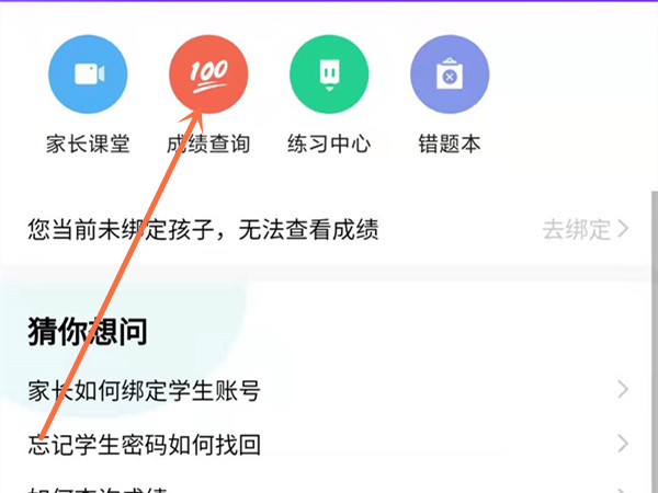 1、打开智学网家长端,在首页点击成绩查询。