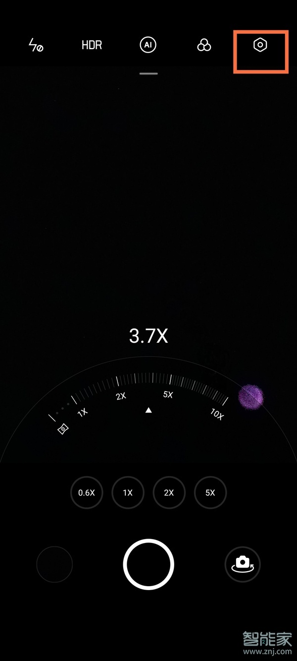1、在桌面打开相机app,在拍照页面点击右上角的设置图标。