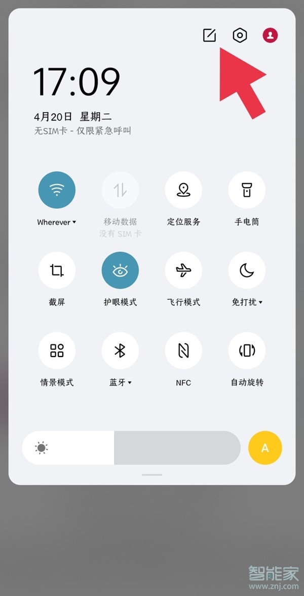 1、从顶部状态栏下滑打开控制中心,点击编辑图标,展开所有图标。