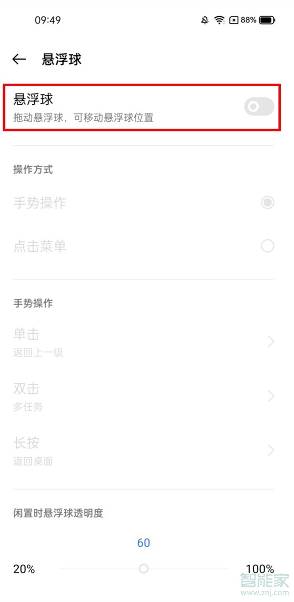 3、将【悬浮球】右侧的开关开启即可。