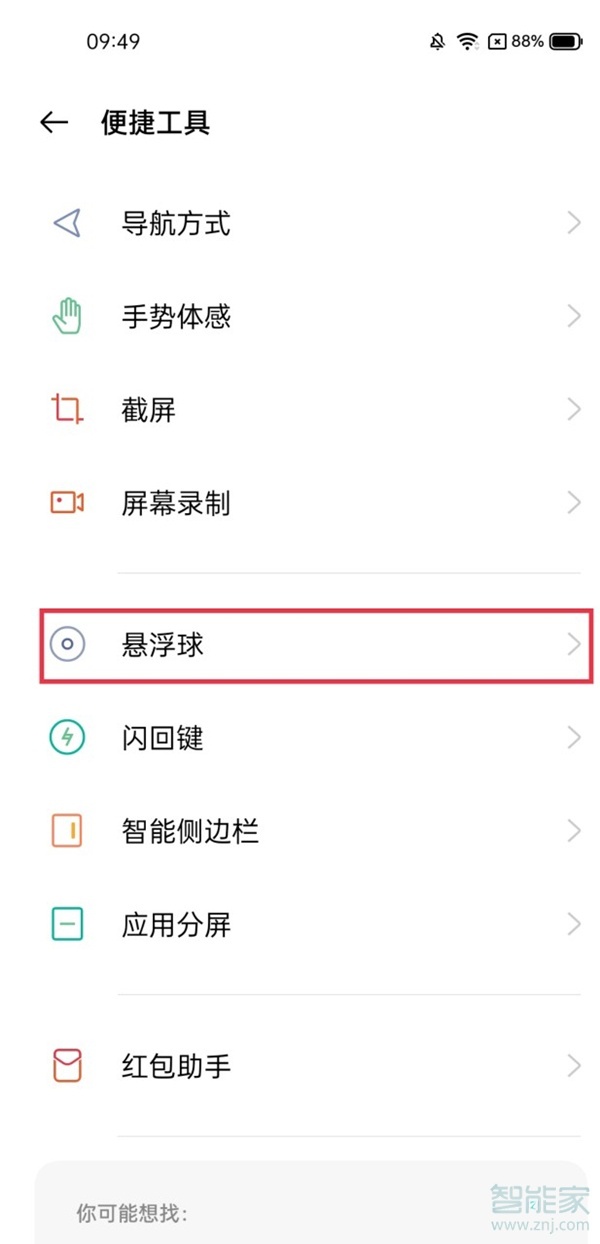 2、点击【悬浮球】。