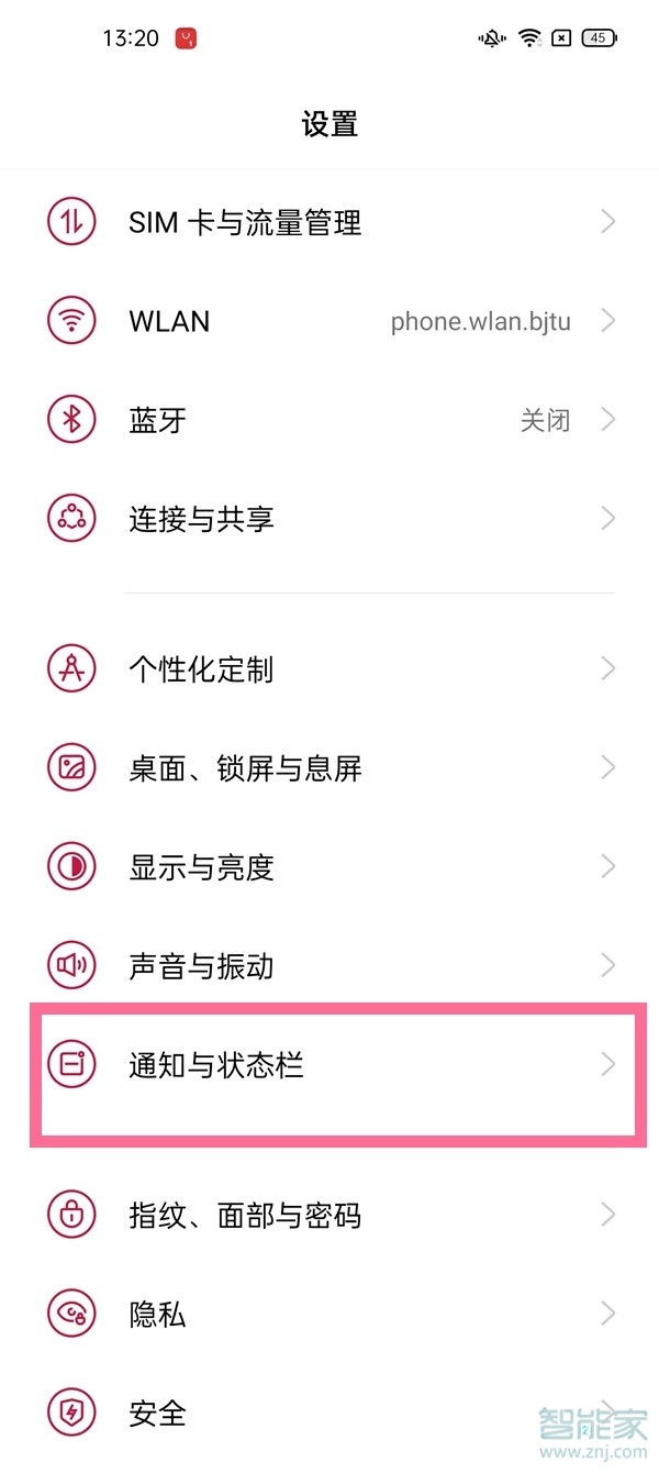 1、在手机设置菜单中点击【通知与状态栏】。