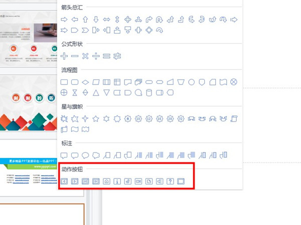 2、在底部的【动作按钮】中选择一种样式即可。