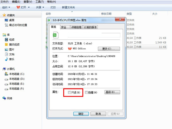 第三种情况:使用鼠标右键点击文件查看“属性”,查看文件信息下是否勾选只读,取消只读属性即可。