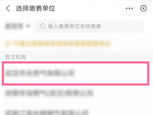 2、点击新增缴费,点击燃气费,选择缴费单位。