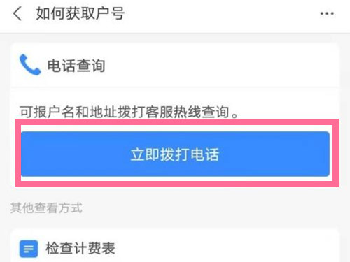 3、点击【如何获取户号】,点击【立即拨打电话】,拨打客服热线,报户名和地址即可查询户号。