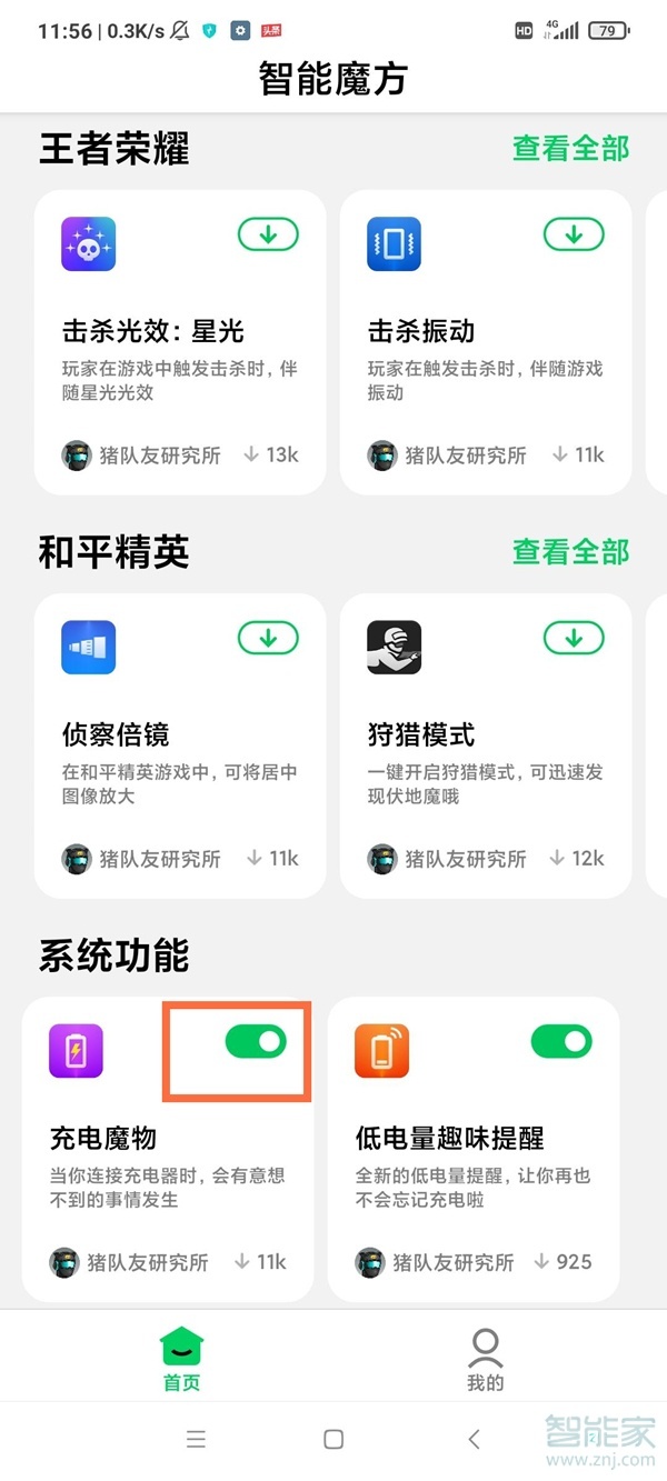 2、在系统功能中将【充电魔物】的开关开启即可。