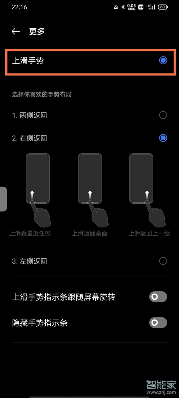 4、在更多中选择要设置的手势布局即可。