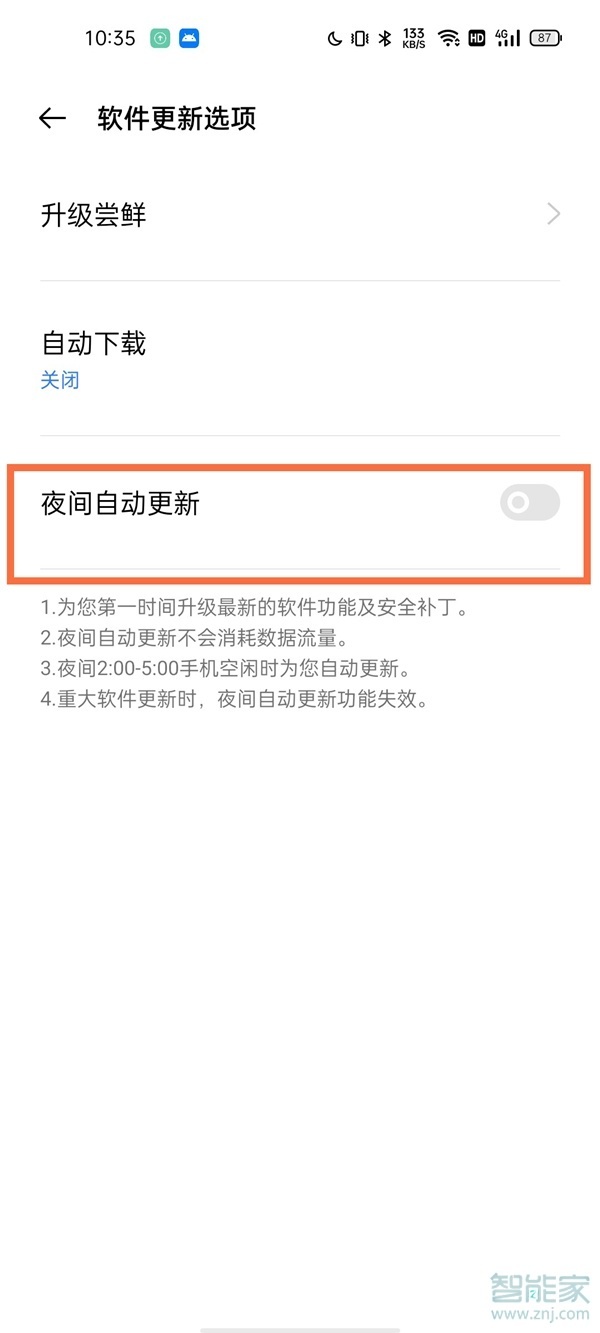 3、将【夜间自动更新】右侧的开关关闭即可。