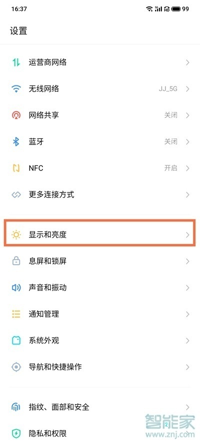 1、打开手机设置,点击【显示和亮度】。