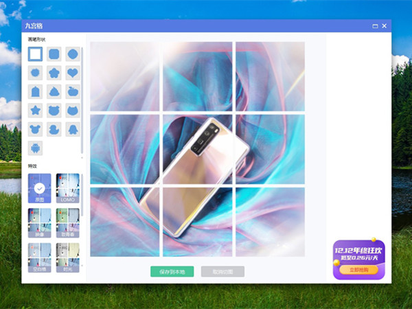 手机美图秀秀没有平均切片功能,但电脑版美图秀秀有九宫切图功能,使用教程如下: